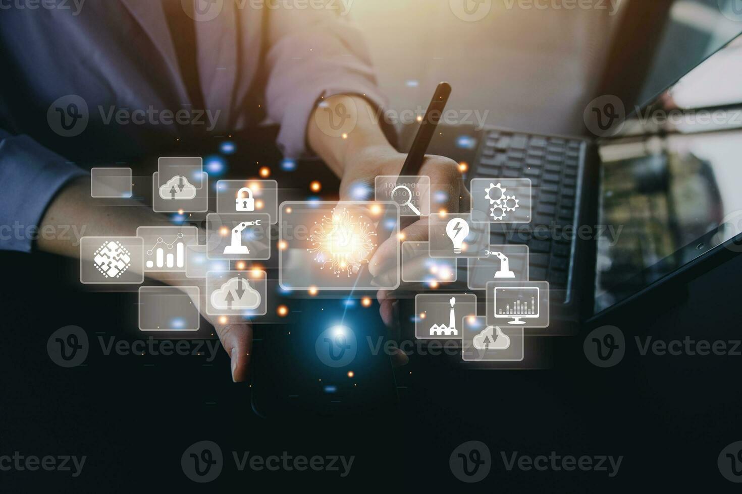 Digital transformation technology strategy, digitization and digitalization of business processes and data, optimize and automate operations, customer service management, internet and cloud computing Pro Photo