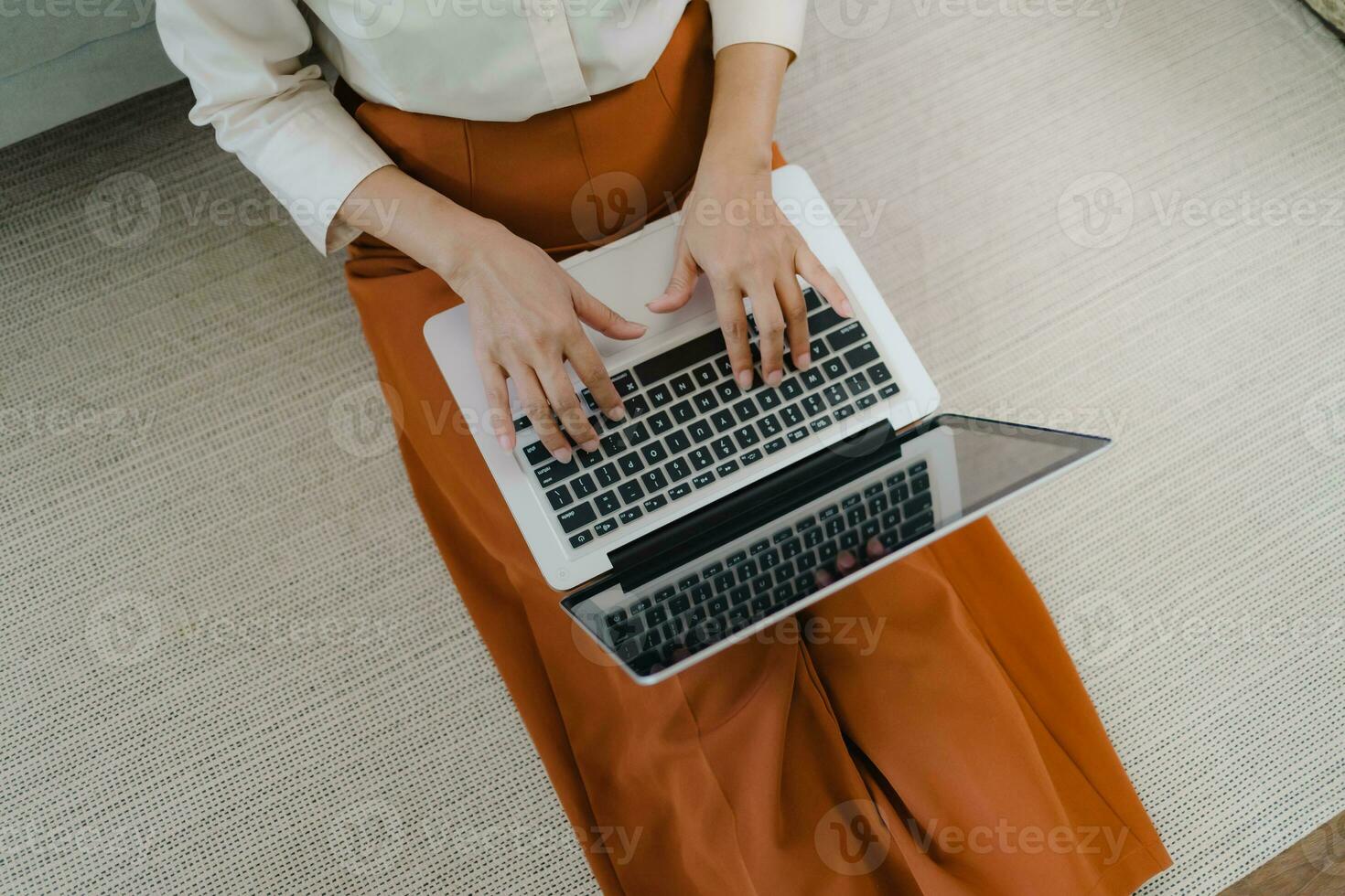 Working by using a laptop computer on wooden table. Hands typing on a keyboard.technology e-commerce concept Pro Photo