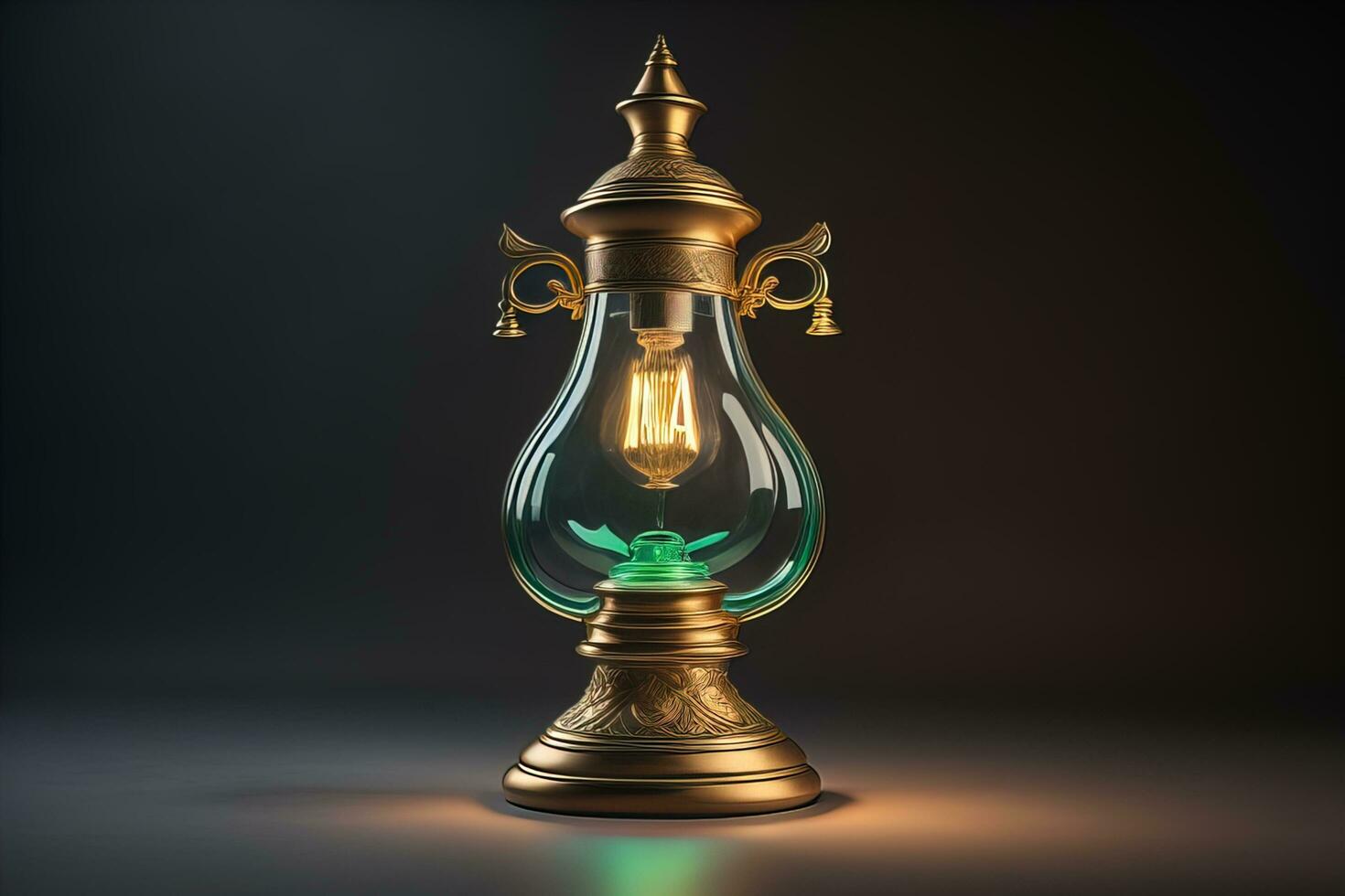 Lantern on a wooden table and a dark background. ai generative Free Photo