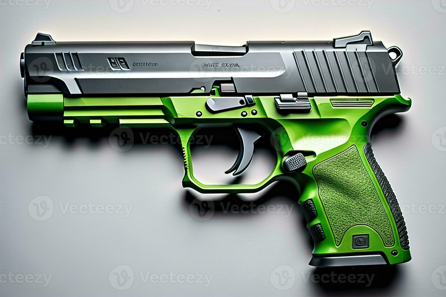 Semi-automatic handgun on a solid color background. Close-up. ai generative Pro Photo
