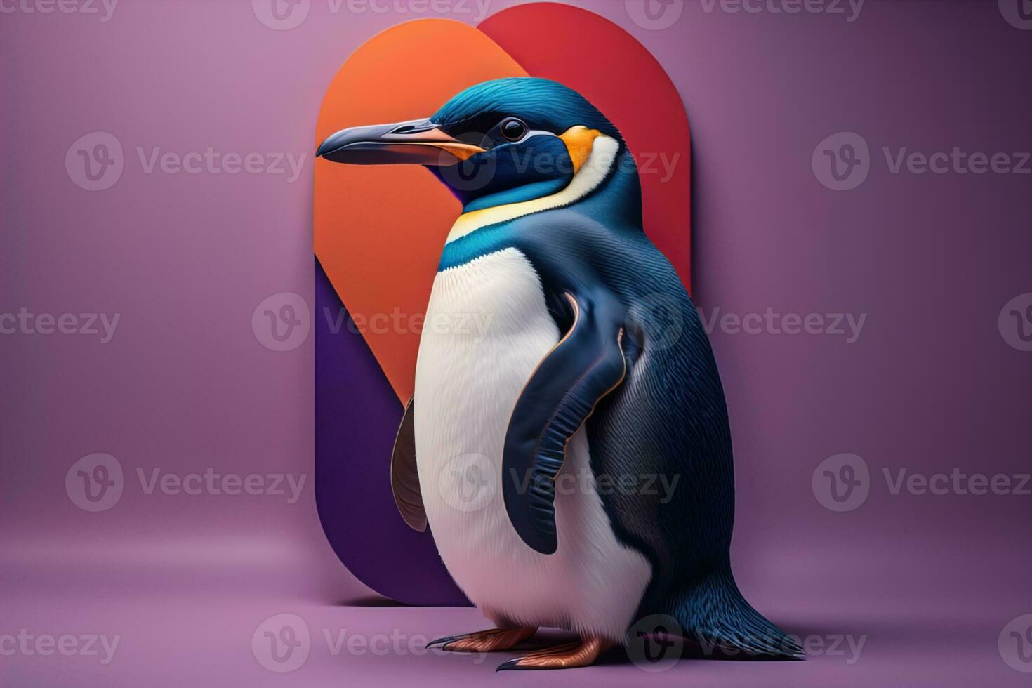 Cute penguin standing in front of solid color background. ai generative Pro Photo