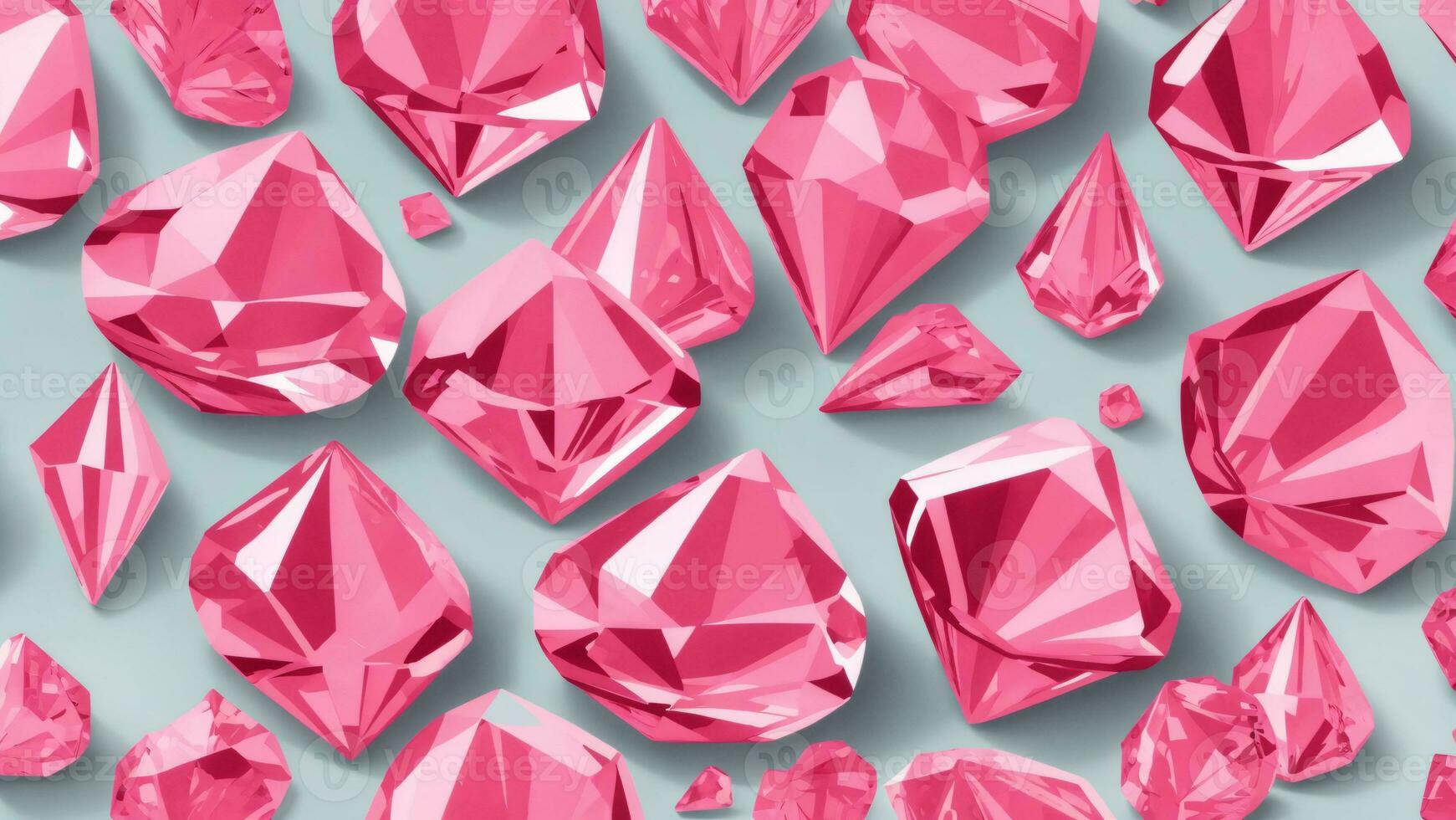 Pink diamonds seamless pattern on a light green background, 3d rendering ai generated Pro Photo