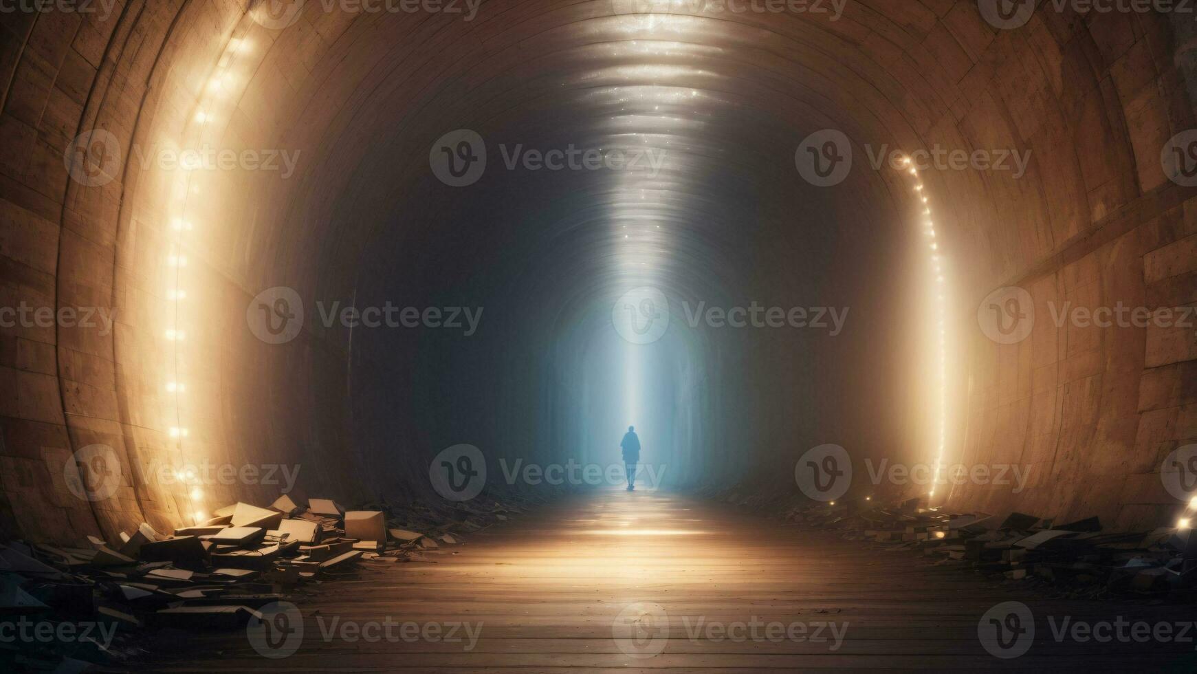 Conceptual image with a silhouette of a man in a tunnel ai generated Pro Photo