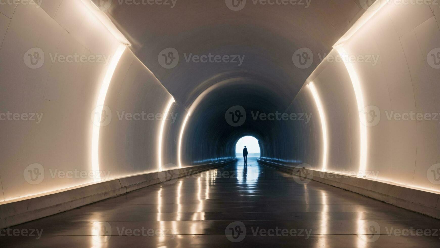 A man walking in a tunnel with light coming from the end ai generated Pro Photo