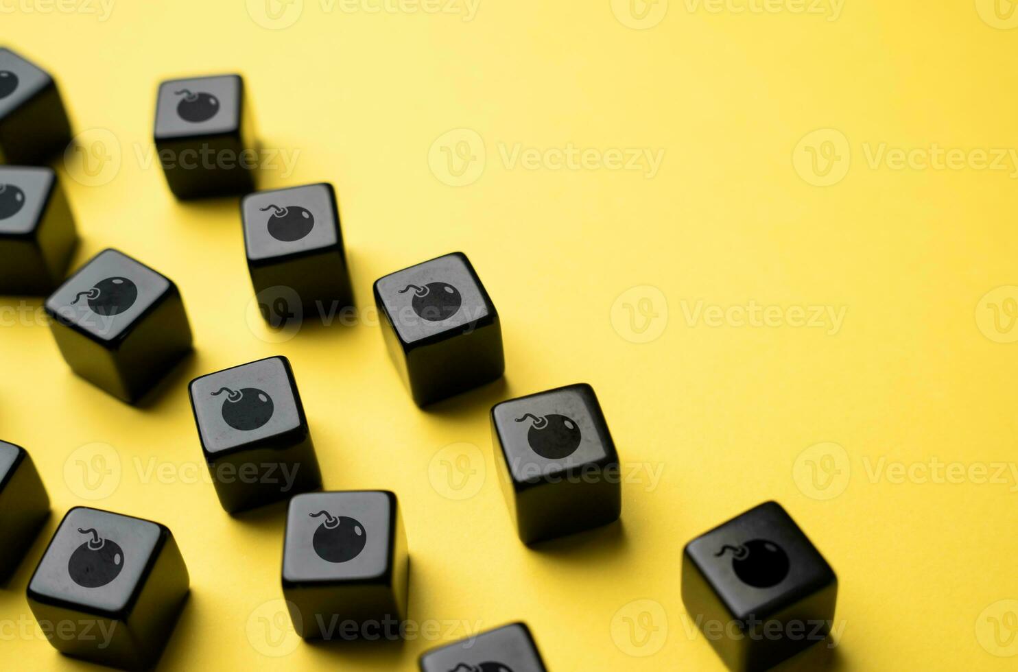 Area of danger through bombs. Concept of difficulties and danger. Place for text. Plan of action on escape from a hazardous or risky circumstance. Navigate towards safety. Don't take risks. Pro Photo