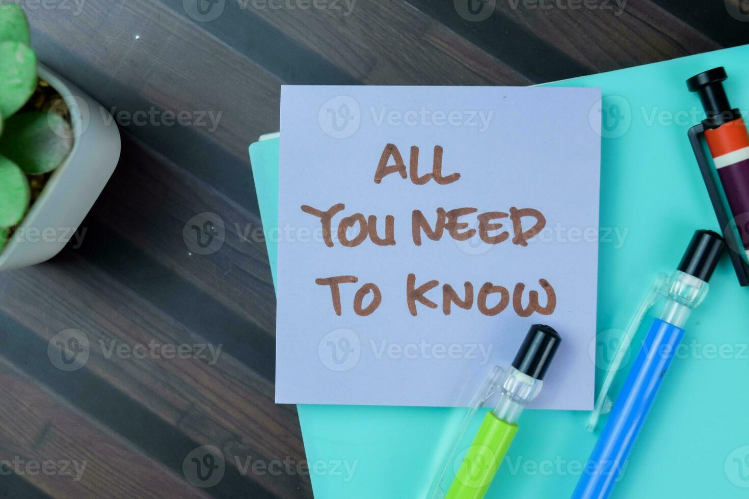 Concept of All You Need To Know write on sticky notes isolated on Wooden Table. Pro Photo