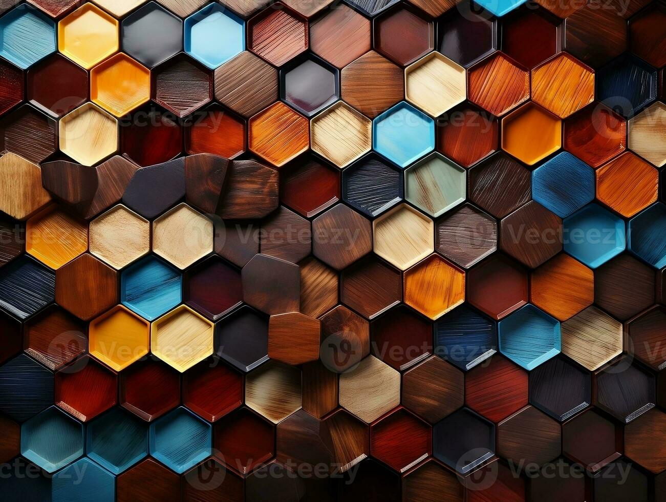 Abstract wooden seamless hexagonal mosaic tiles background with hexagons cubes in wooden texture generative ai Pro Photo