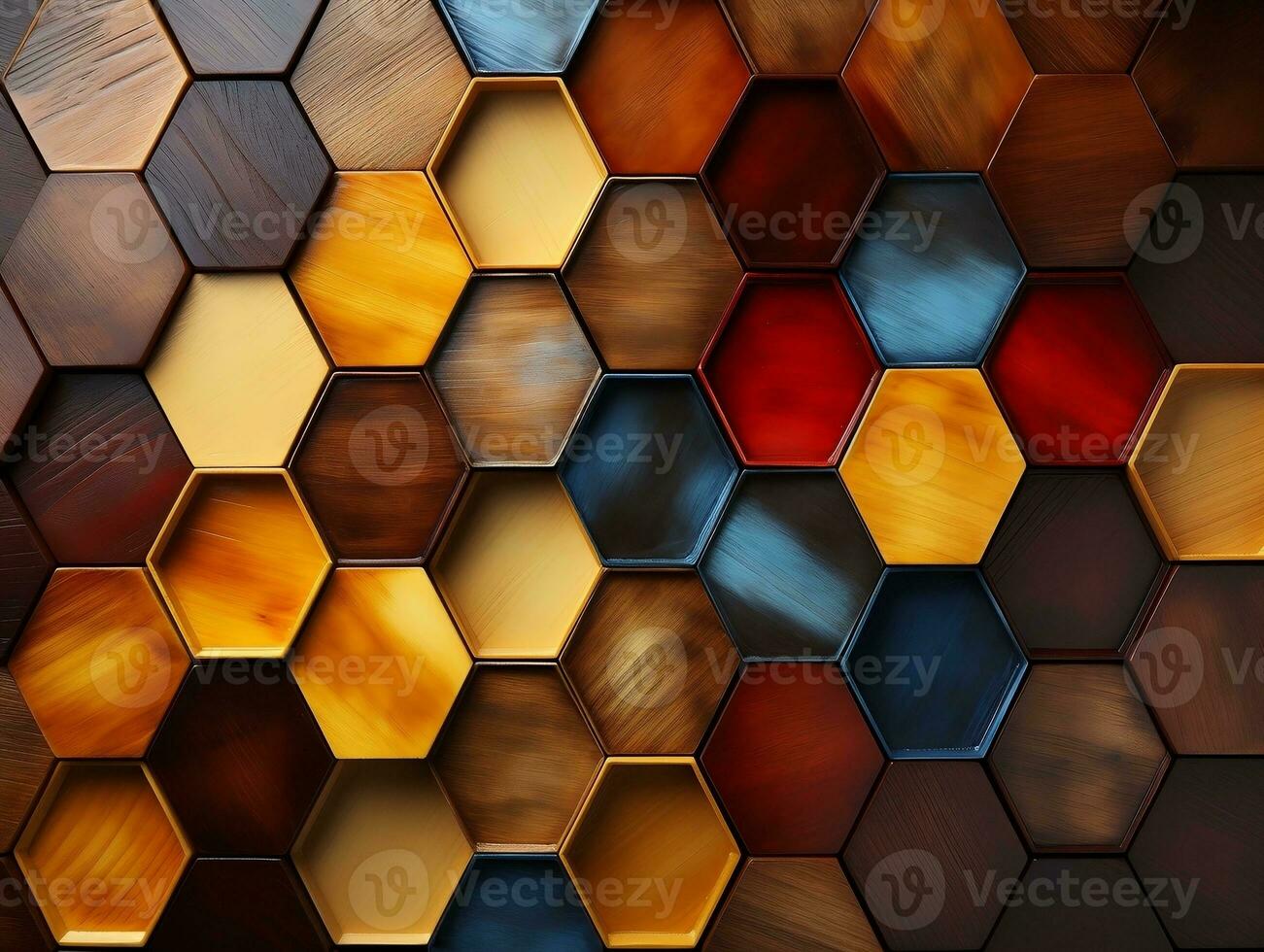 Abstract wooden seamless hexagonal mosaic tiles background with hexagons cubes in wooden texture generative ai Pro Photo