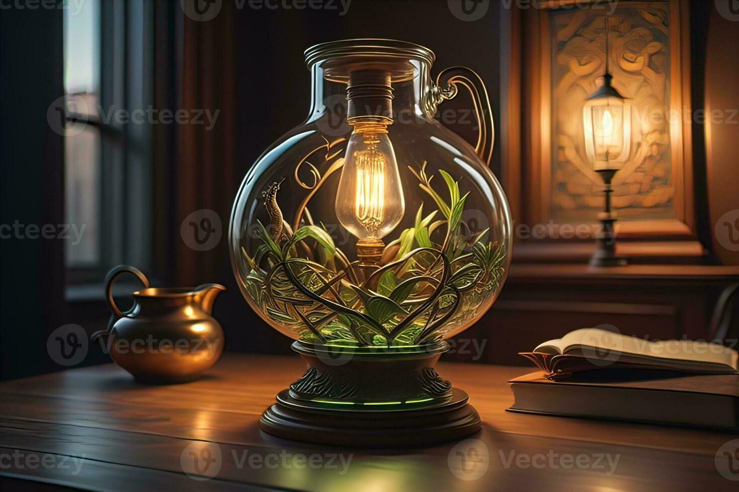 Lantern with glowing light on dark background. ai generative Pro Photo