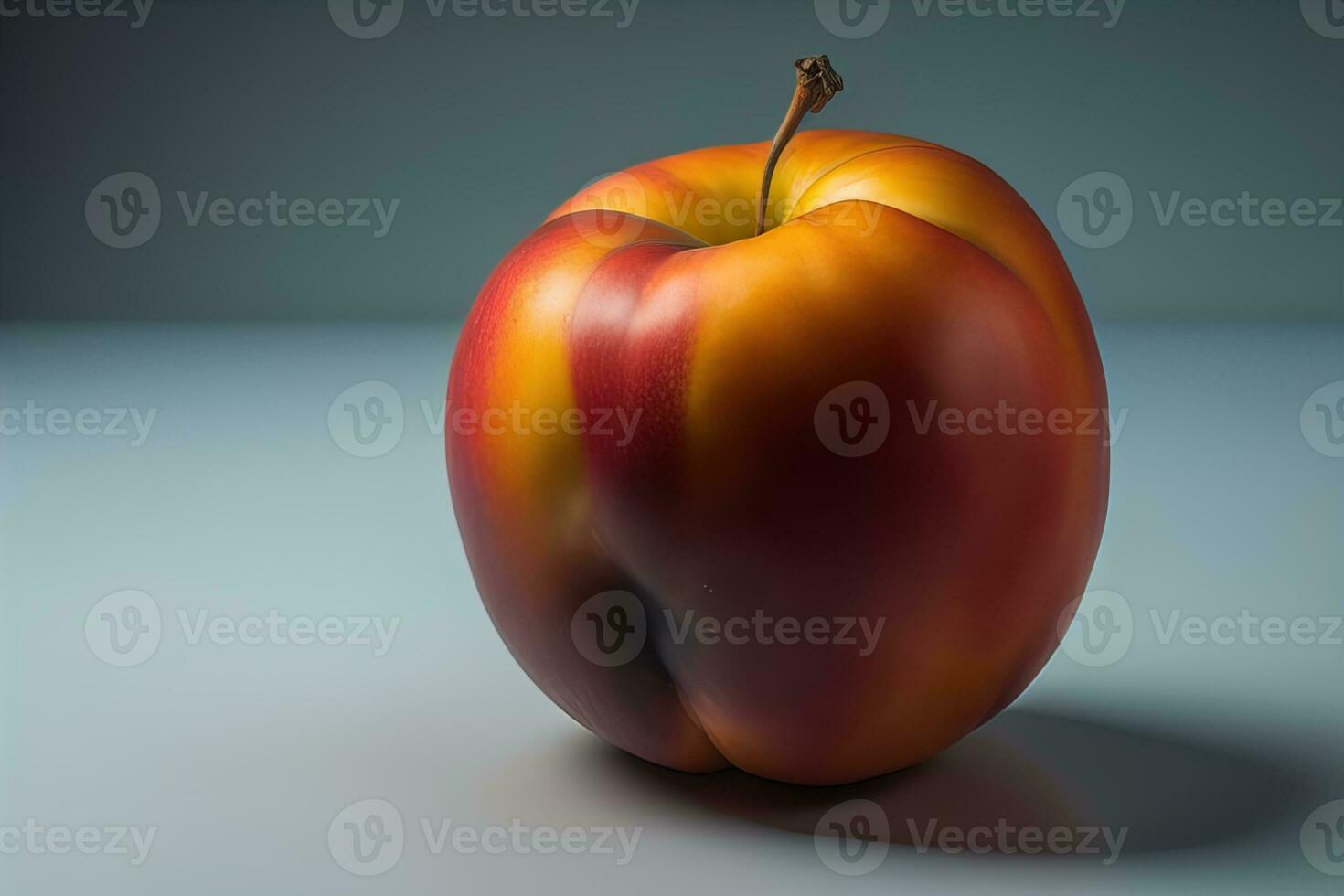 Ripe red peach on a solid color background. ai generative Pro Photo