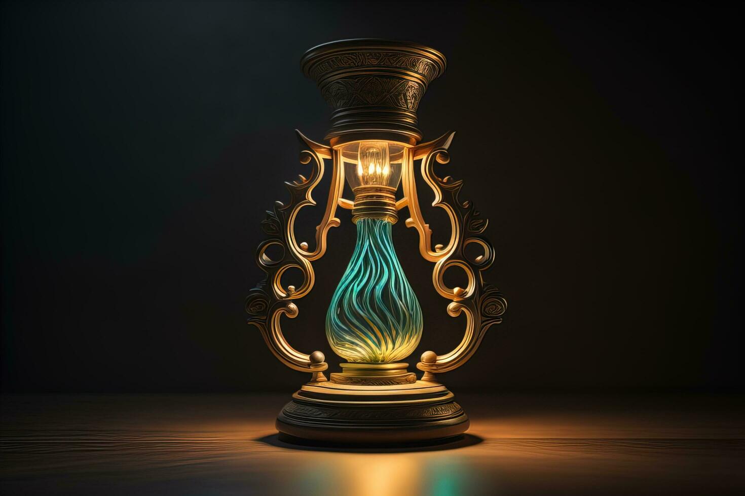 Lantern on a wooden table and a dark background. ai generative Free Photo