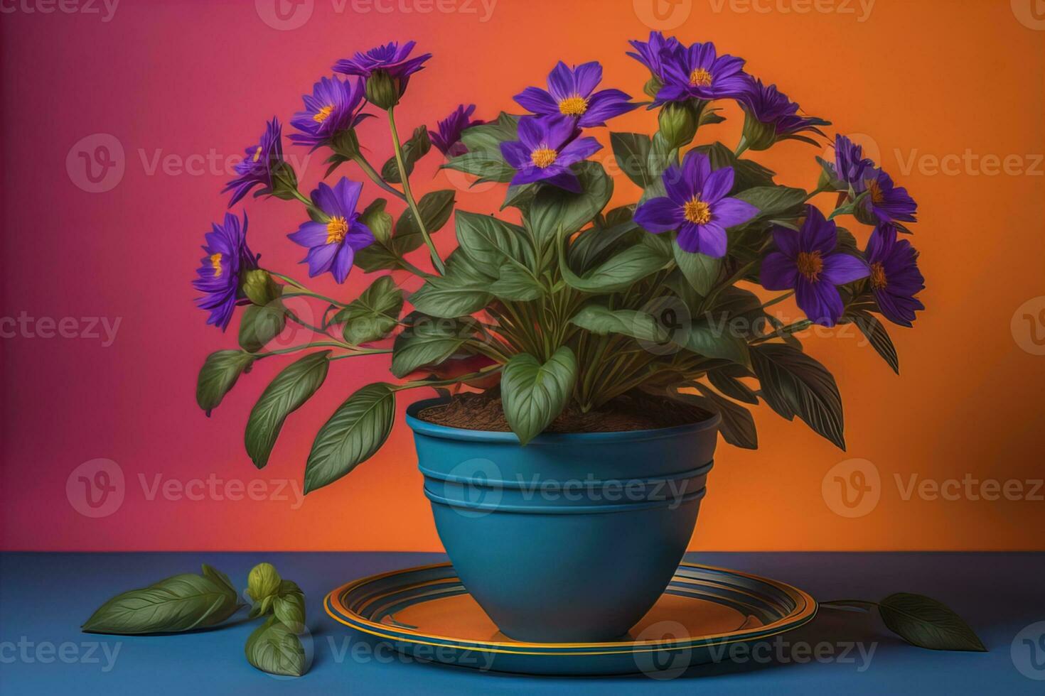 Flowers in a pot on a solid color background. ai generative Pro Photo