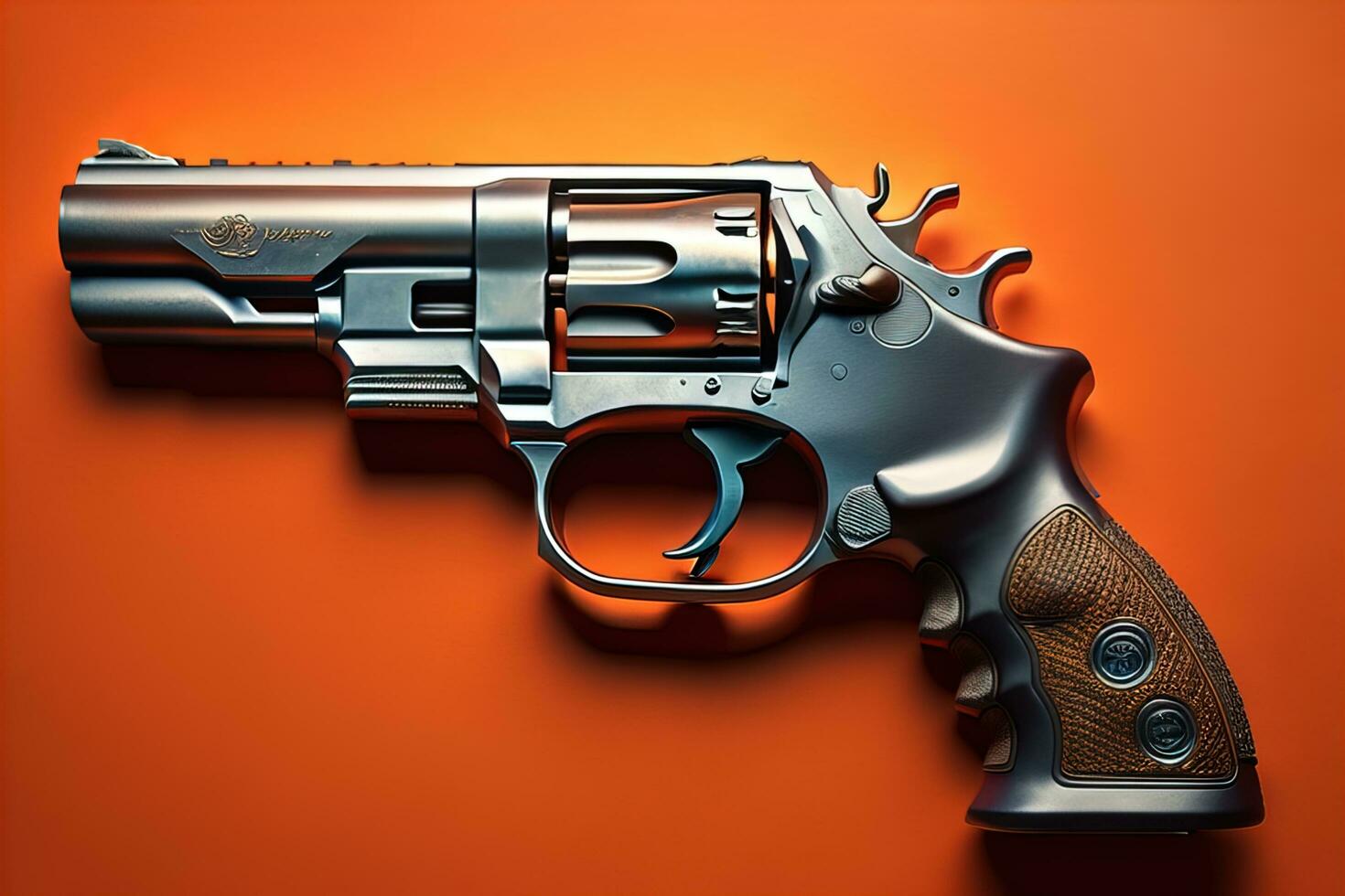 Semi-automatic handgun on a solid color background. Close-up. ai generative