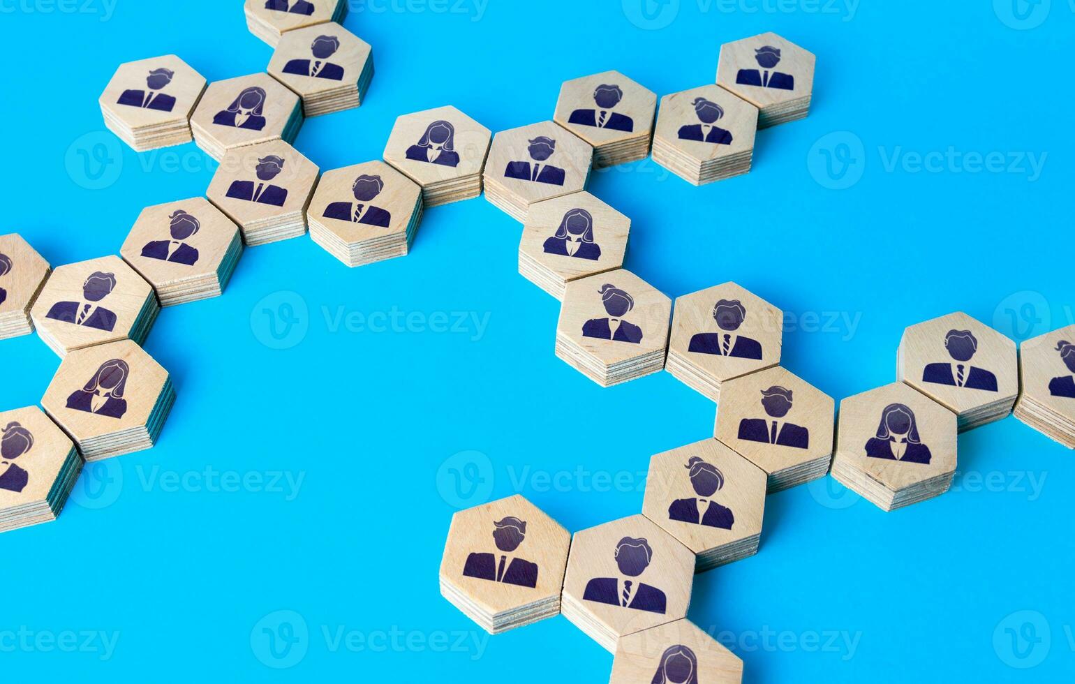 Chains of connected people. Cooperation in solving tasks. Assistance and collaboration. Unity. Networking. Social connections. Build working relationships and interactions in the company. Pro Photo