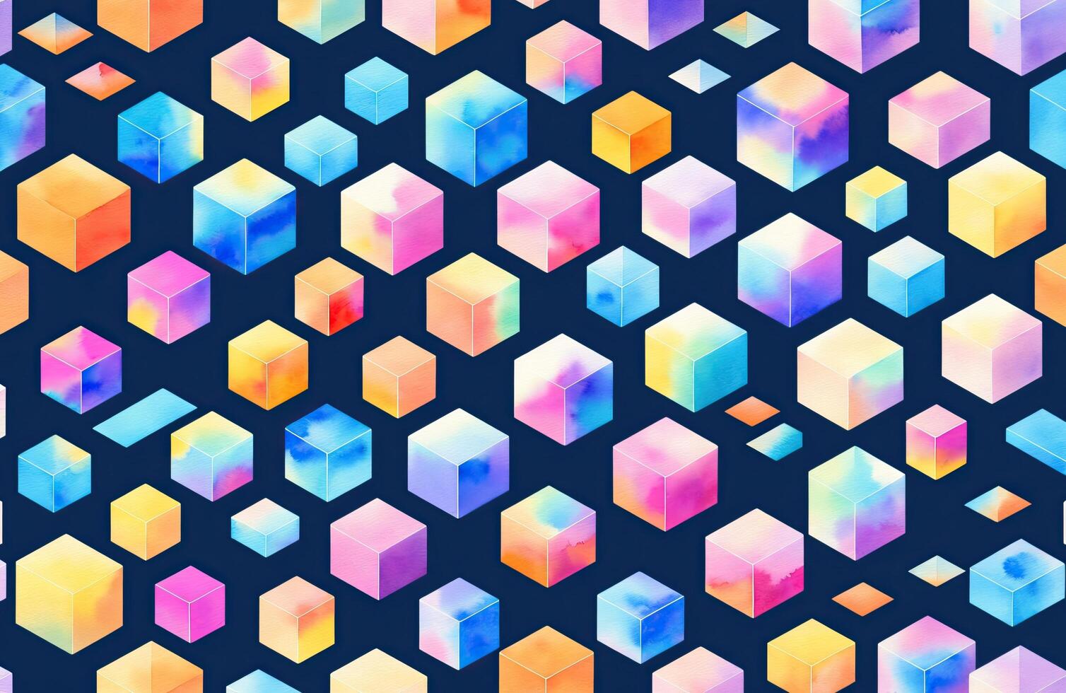 watercolour style, geometric, cube, square, , generative, ai photo