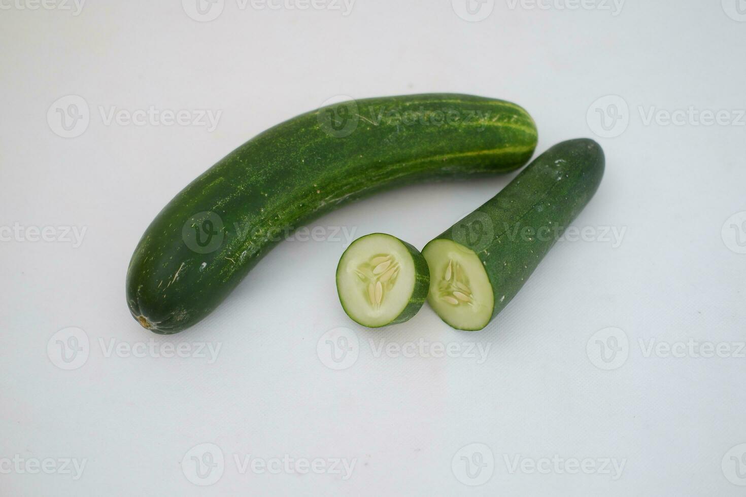 Cucumber and slices on a white background. Selective focus. Pro Photo