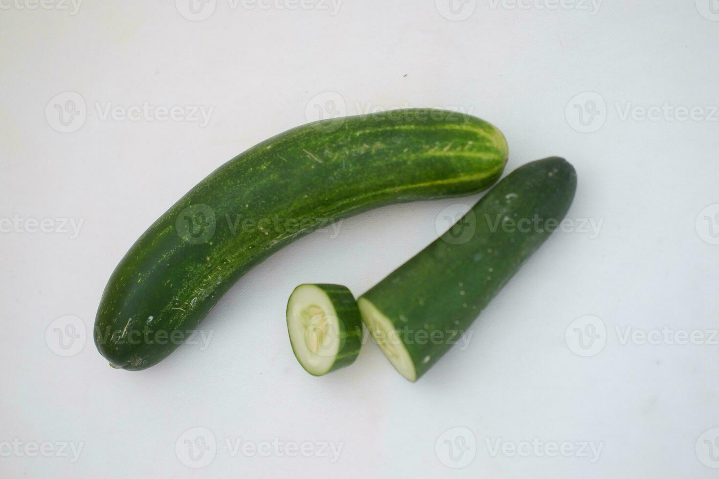Cucumber and slices on a white background. Selective focus. Pro Photo