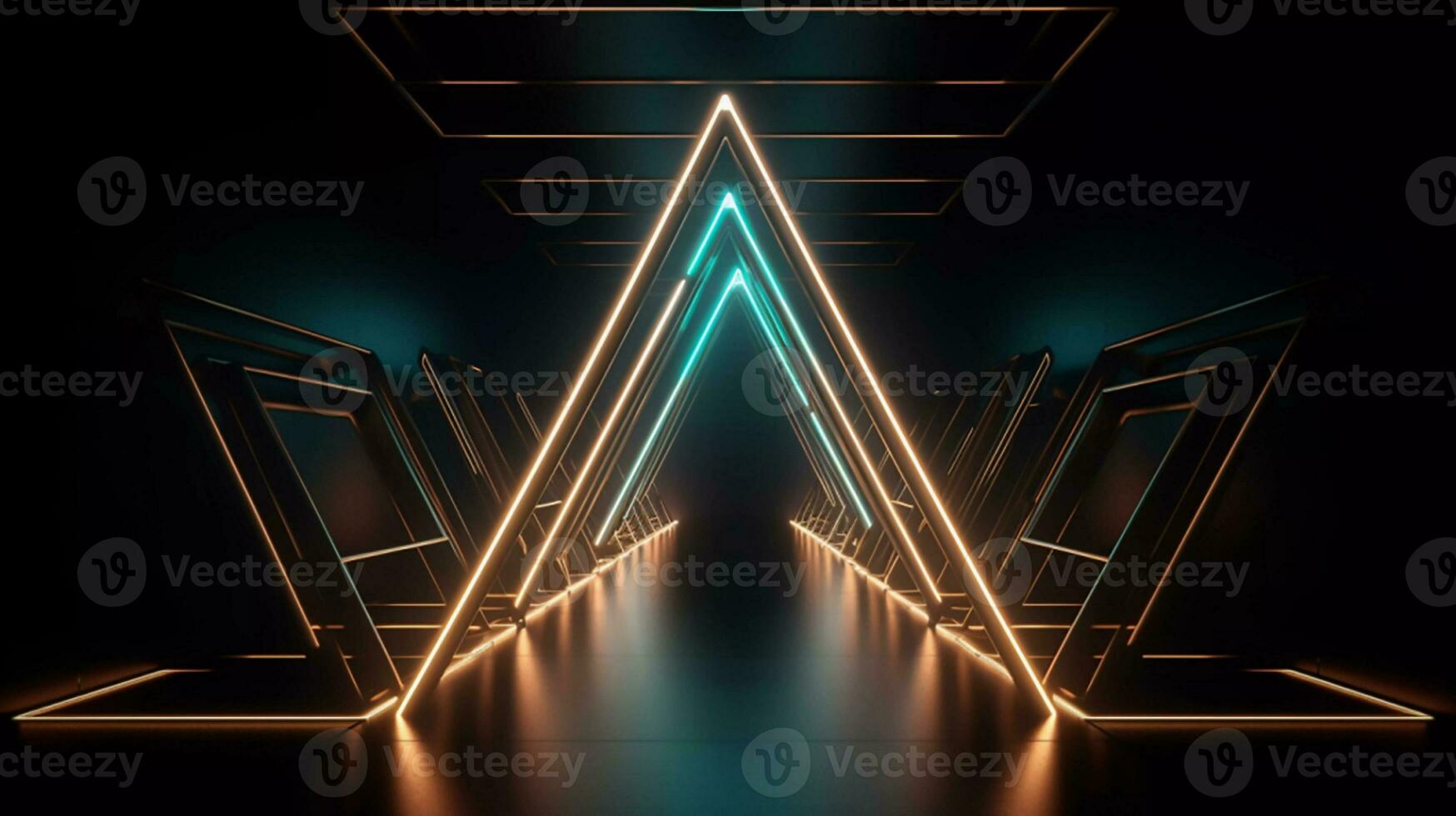 abstract geometric neon background with glowing triangular frame Pro Photo