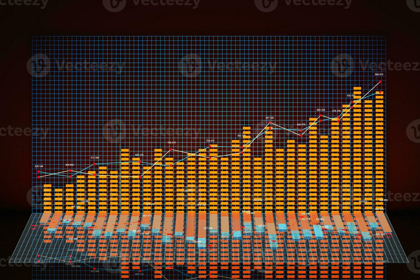Business chart with line graph, bar chart and numbers on dark background, 3d rendering Pro Photo