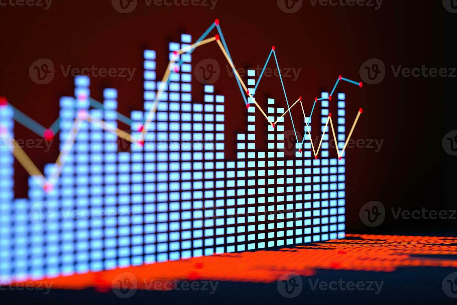 Business chart with line graph, bar chart and numbers on dark background, 3d rendering Pro Photo