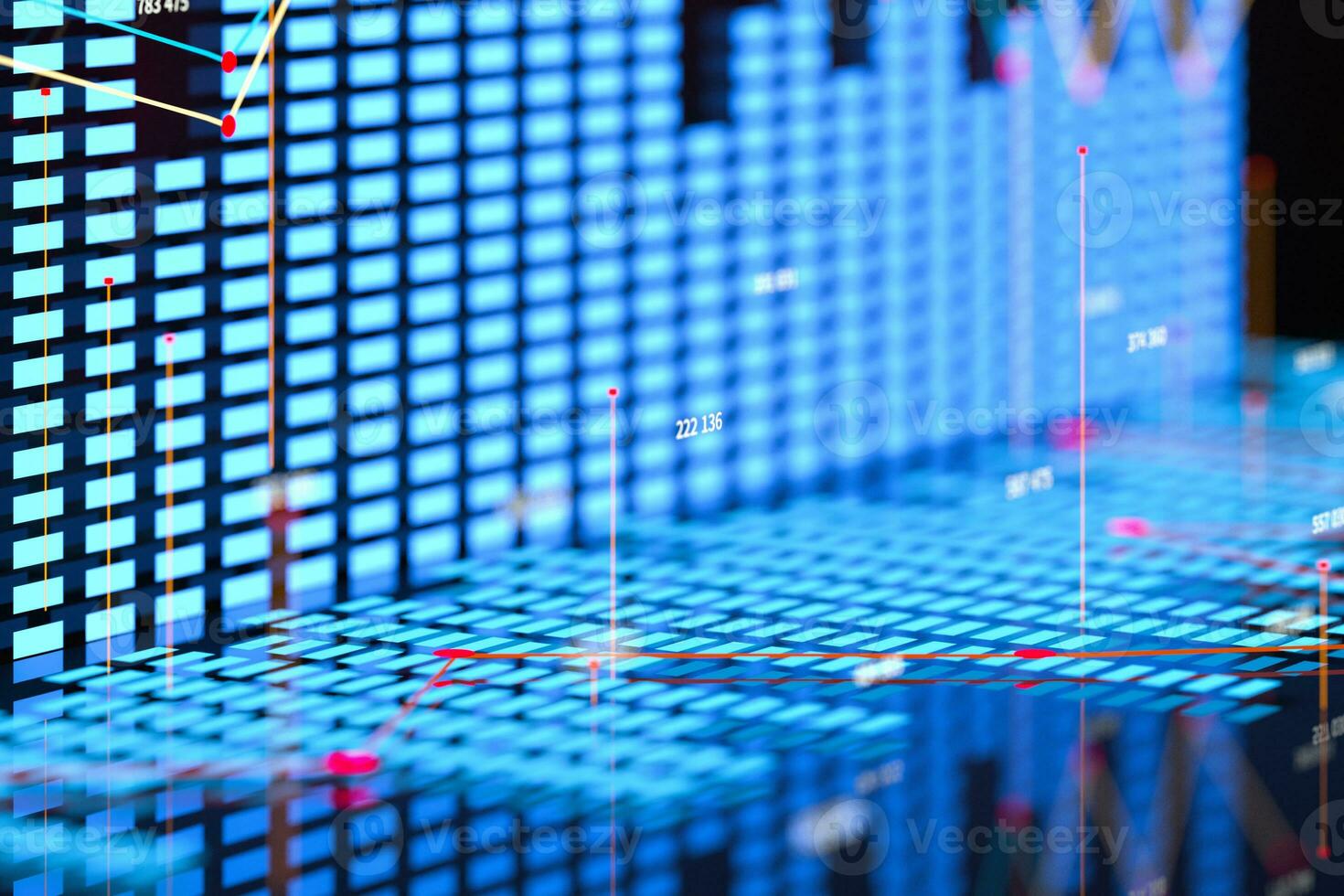 Business chart with line graph, bar chart and numbers on dark background, 3d rendering Pro Photo