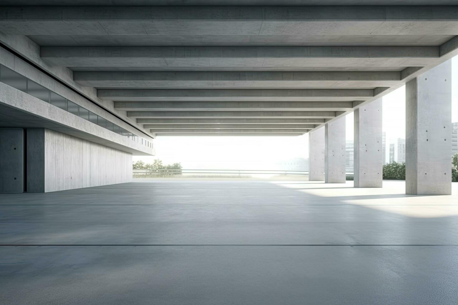 Modern concrete architecture building, exterior floor and roof, zone of car park, construction building, with empty space in clean design, with Generative Ai. photo