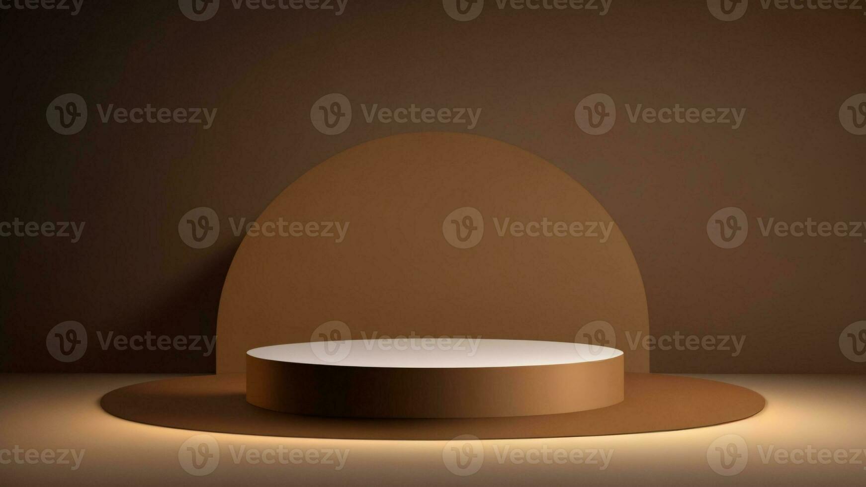 3d rendering of a round podium on a brown background. Platform for product presentation. ai generated Pro Photo