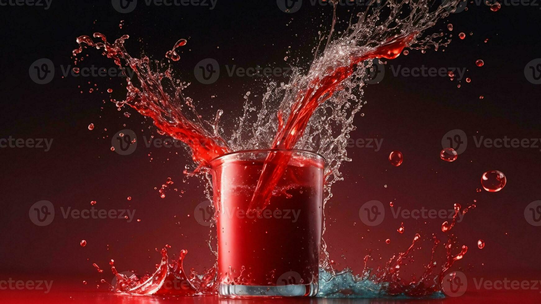 glass of red sparkling water with splashes and drops on a dark background ai generated Pro Photo