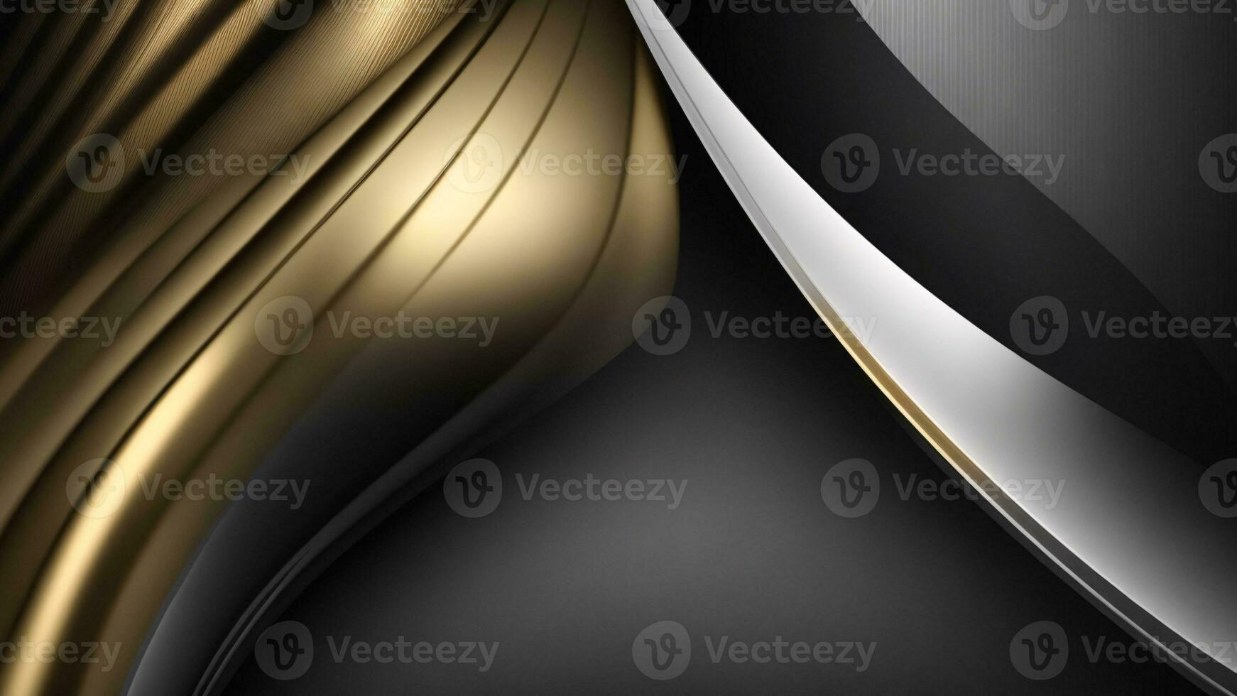 3d render of abstract wavy metallic background with black and gold elements ai generated Pro Photo