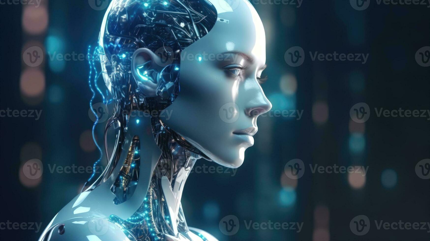 Cybernetic Brain A Metallic Head with AI Technology and Bokeh Background AI Generative Pro Photo
