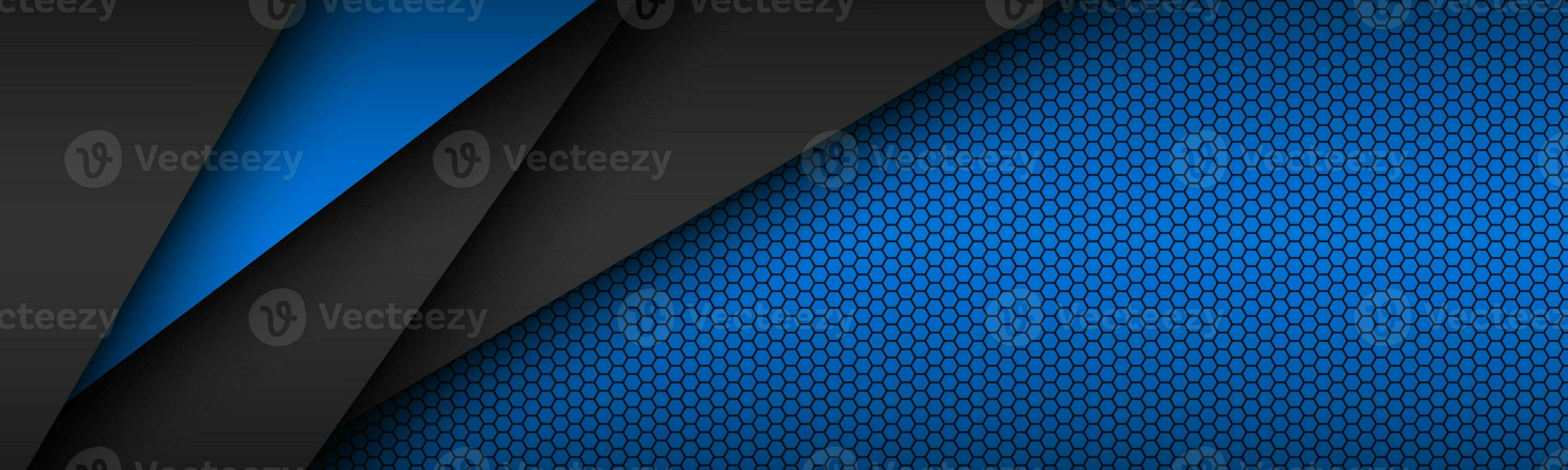 Black and blue layers above each other header. Modern material design with a hexagonal pattern. Vector abstract widescreen banner Pro Photo