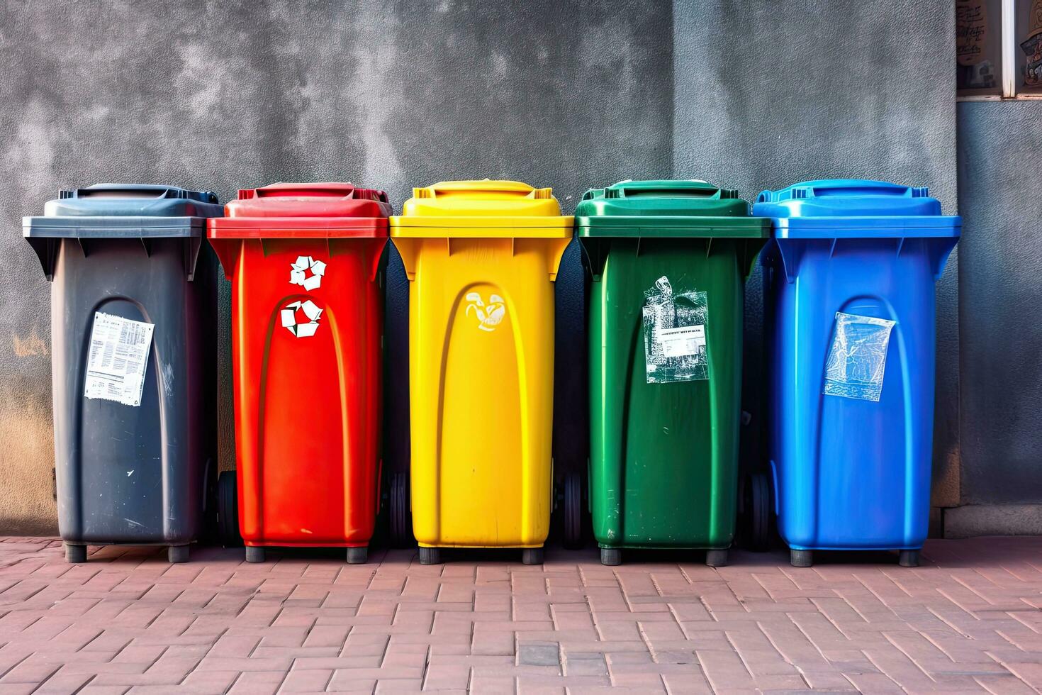 Separating waste plastic bottles into recycling colorful Garbage bins ,Generative AI Free Photo