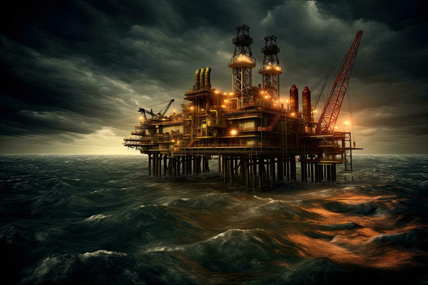 Oil and Gas processing platform,producing gas condensate and water and sent to onshore refiner ,Generative AI . Free Photo