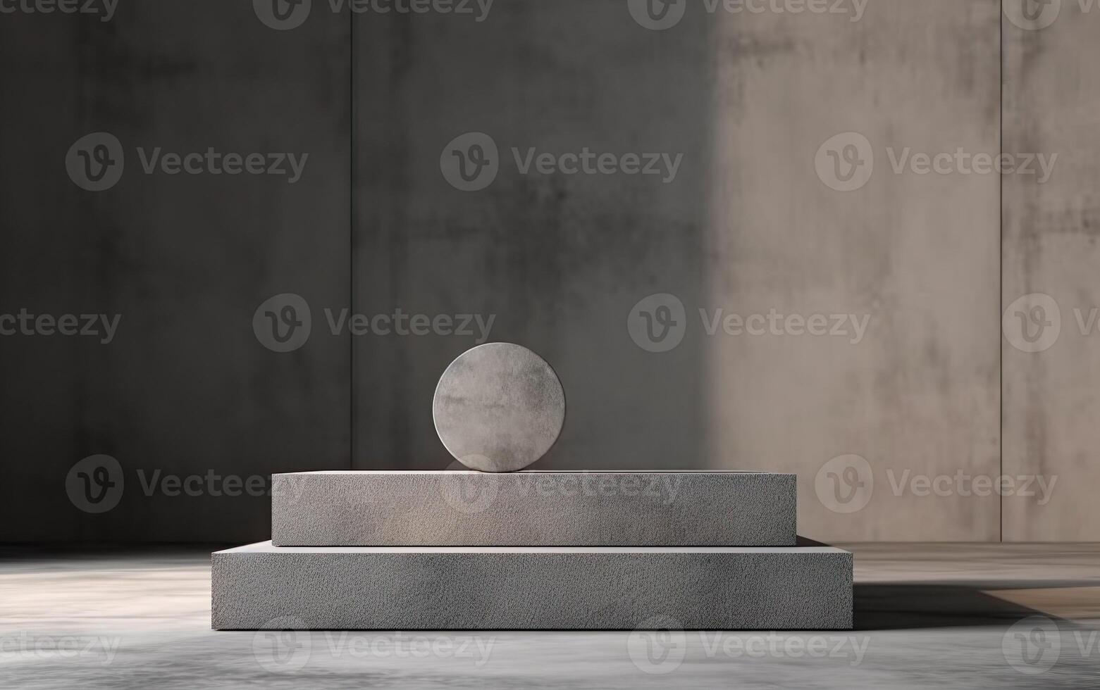 3d rendering empty mockup scene of cube rectangle podium for product template display, gray marble wall and floor with daylight and shadow, Pro Photo