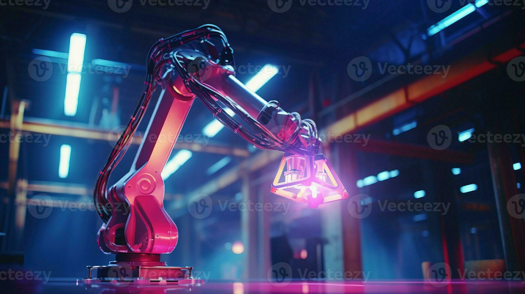 Robotic arm machine technology with background mechanical factory generated by AI Pro Photo