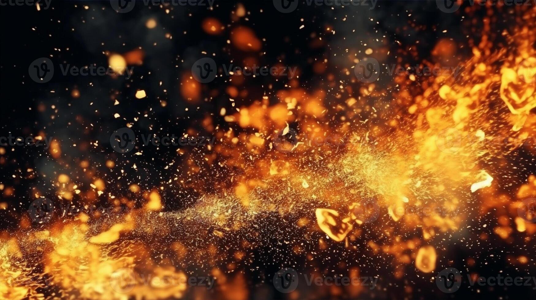 abstract fire background with sparks and golden bokeh. 3d rendering , Pro Photo