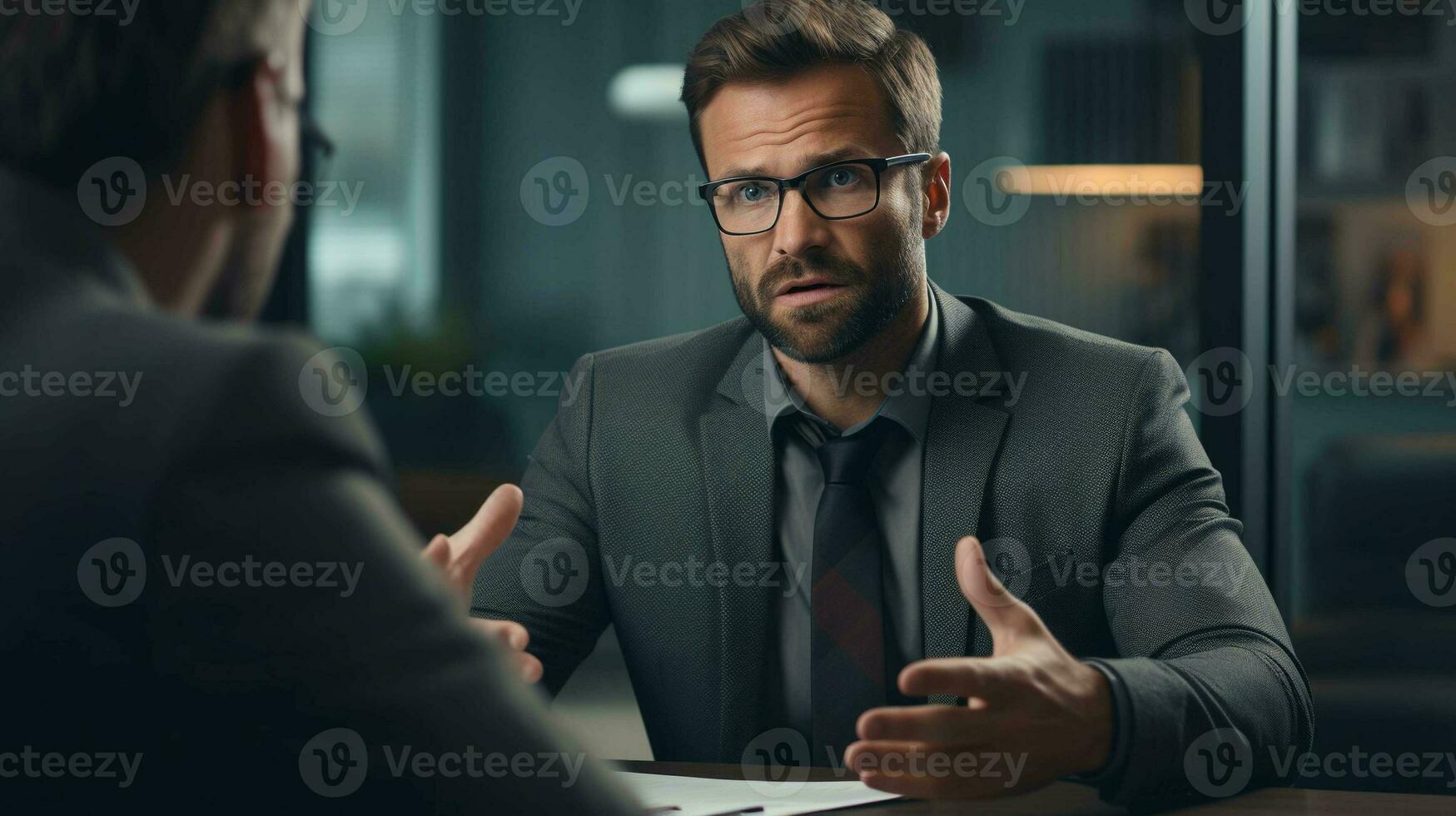 Professional Interview, Office Scene as an Interviewer Asks a New Candidate Perfect for HR Concepts Pro Photo