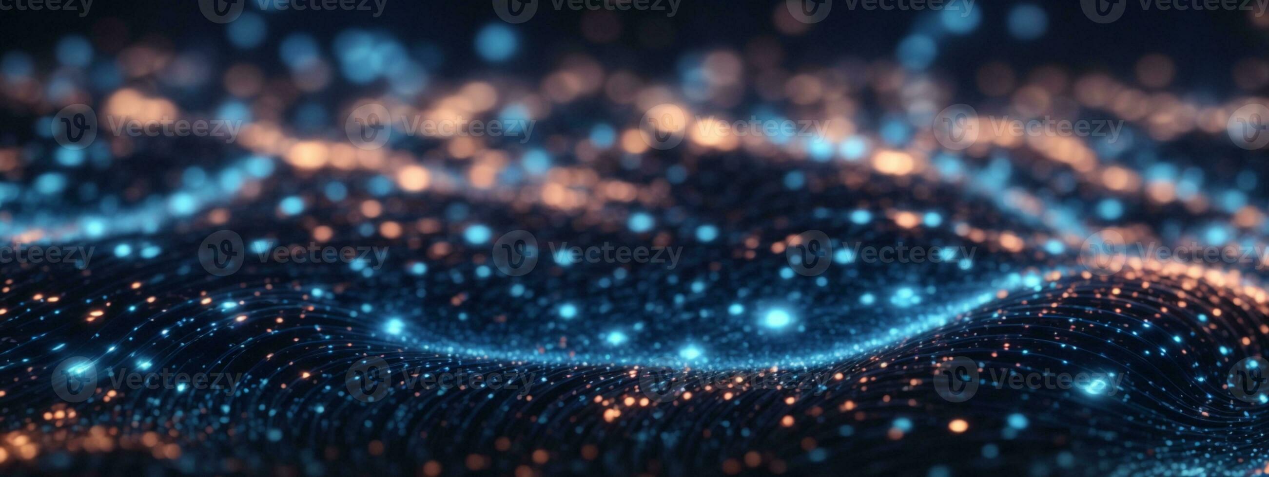 Data technology illustration. Abstract futuristic background. Wave with connecting dots and lines on dark background. Wave of particles.. AI generated Pro Photo