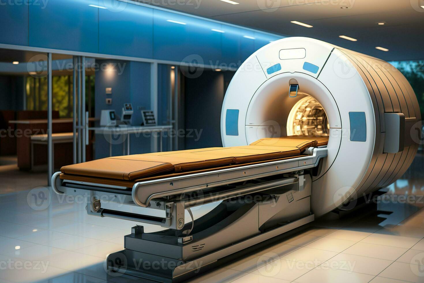 Computerized tomography machine in radiology room. Generative AI. Pro Photo