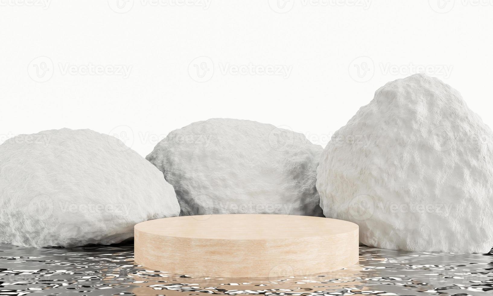 White stone podium, display product stand with water reflection background. 3D rendering Pro Photo