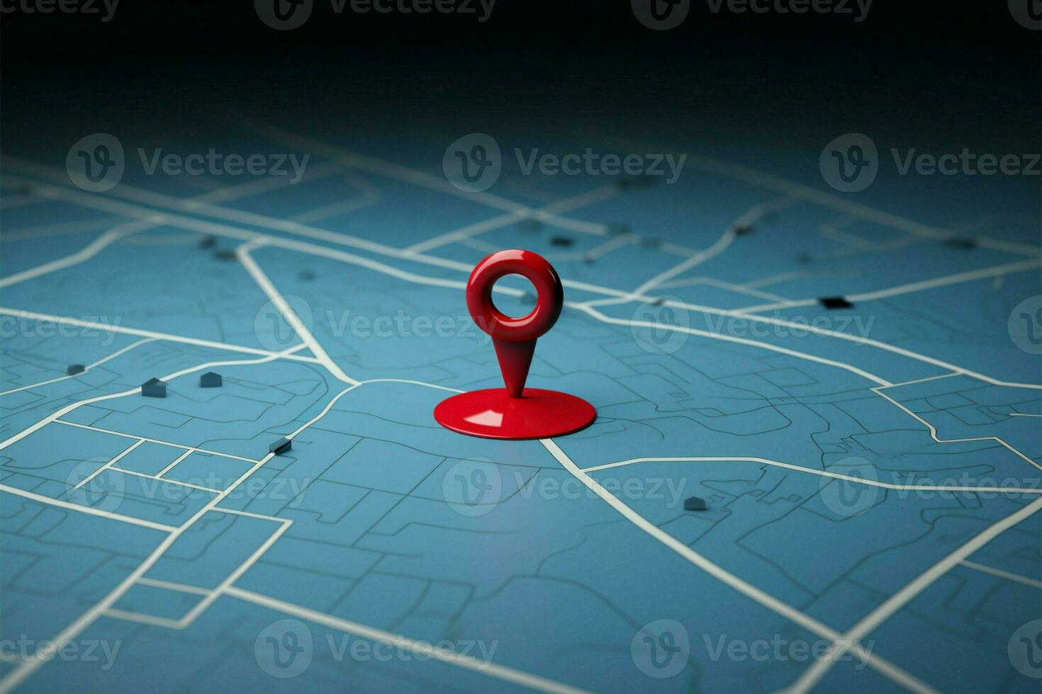 Ample copy space complements a 3D red map pointer background AI Generated Pro Photo