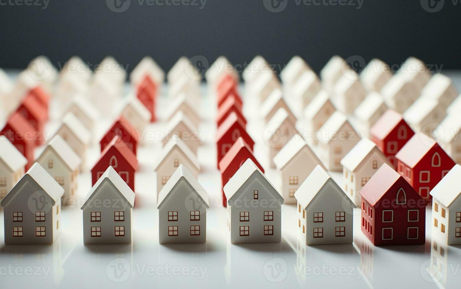 Cluster of Miniature White Houses with a Single Red One. Generative AI Pro Photo