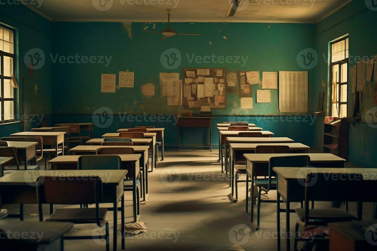 Schoolroom Serenity An Unoccupied Classroom with Desks and Tables. Generative By Ai Pro Photo