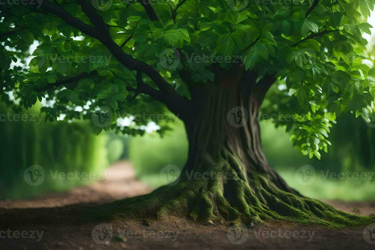 a tree with roots in the middle of a field. AI-Generated Pro Photo