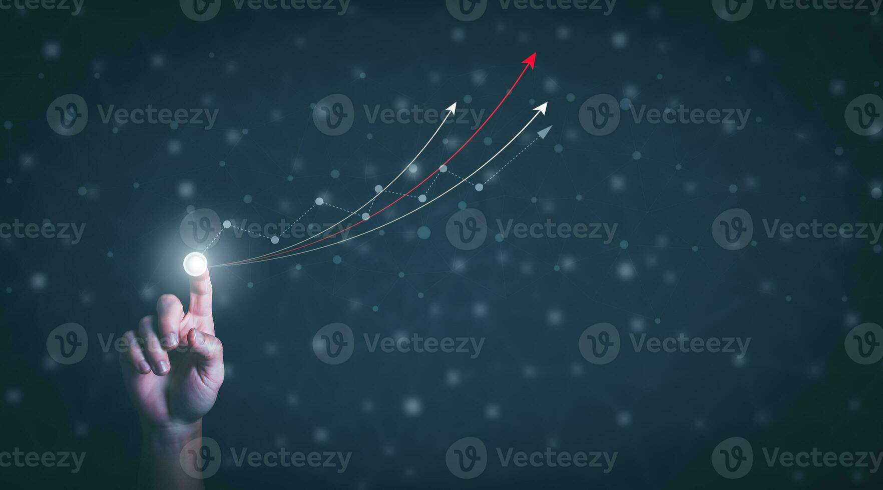 a person touching virtual screen to press the start button, concept management startup digital transformation Internet of Things, Big Data and Business Processes, Automated Operations, Data Storage Pro Photo