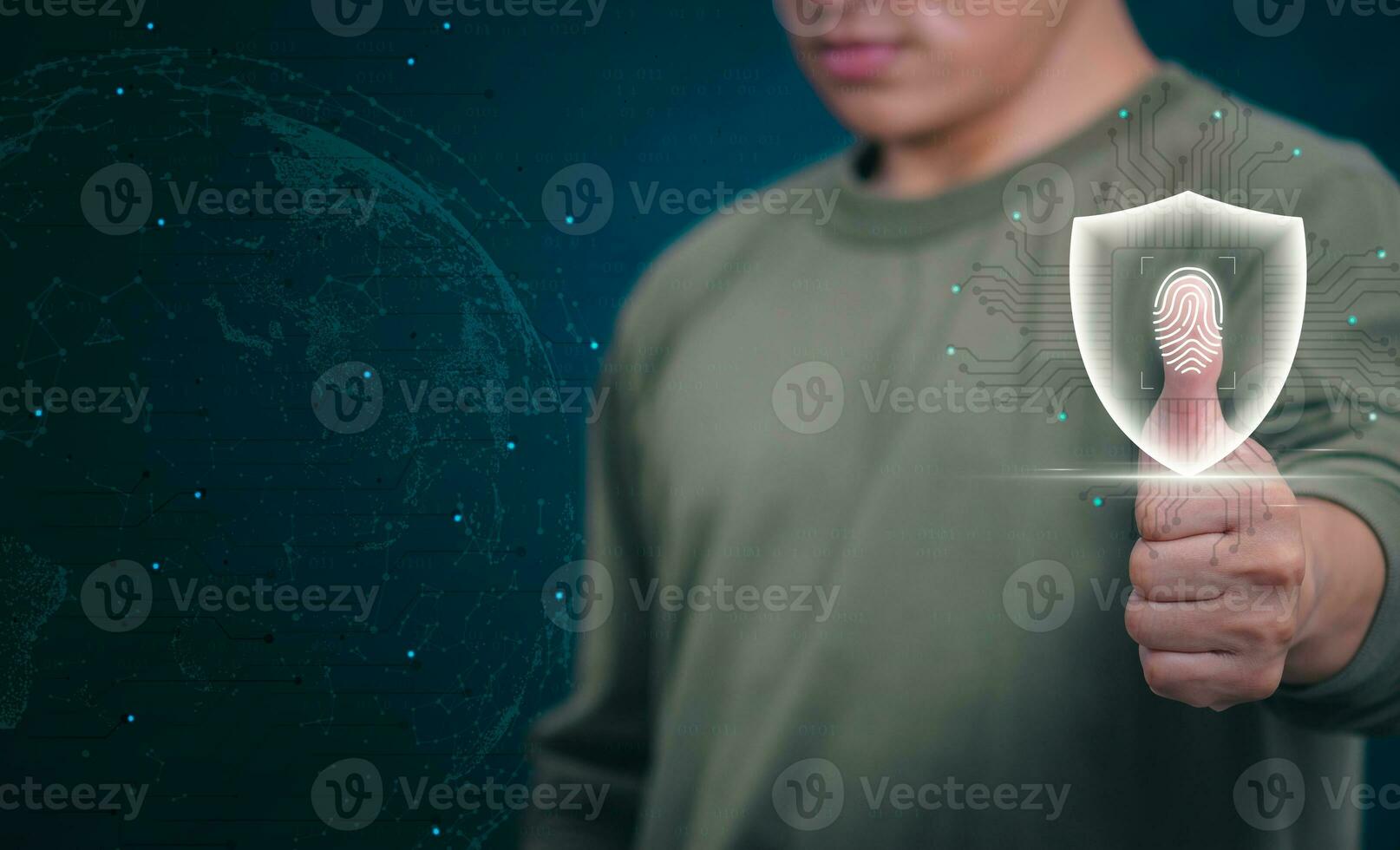 Protection and encryption of fingerprint data with network technology for security. To protect against crimes, hackers, and everyday online attacks, technology, and data security. authentication Pro Photo