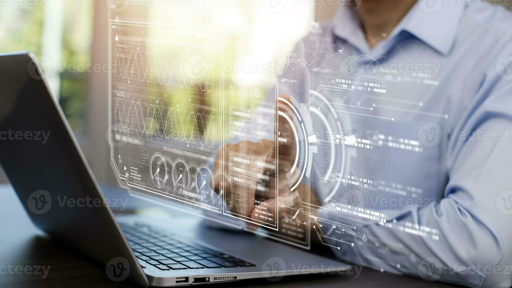 Businessman hold laptop with Update Software Computer Program Upgrade Business Technology Internet, Update on virtual screen. Internet and technology concept, loading bar with installing the update. Pro Photo