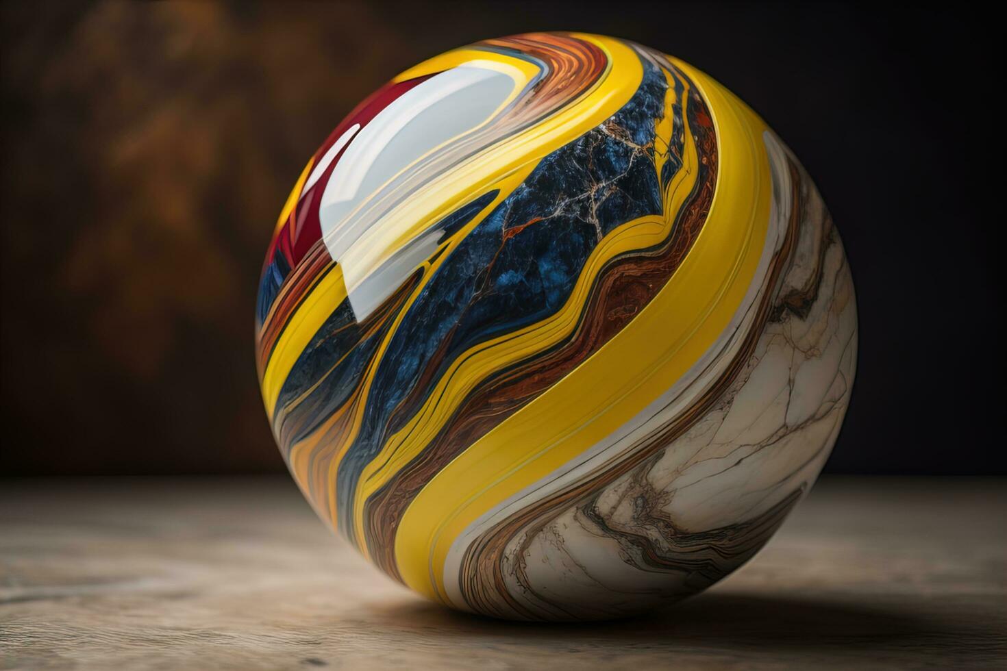 Colorful marble ball on a solid colour background. Close-up. ai generative photo