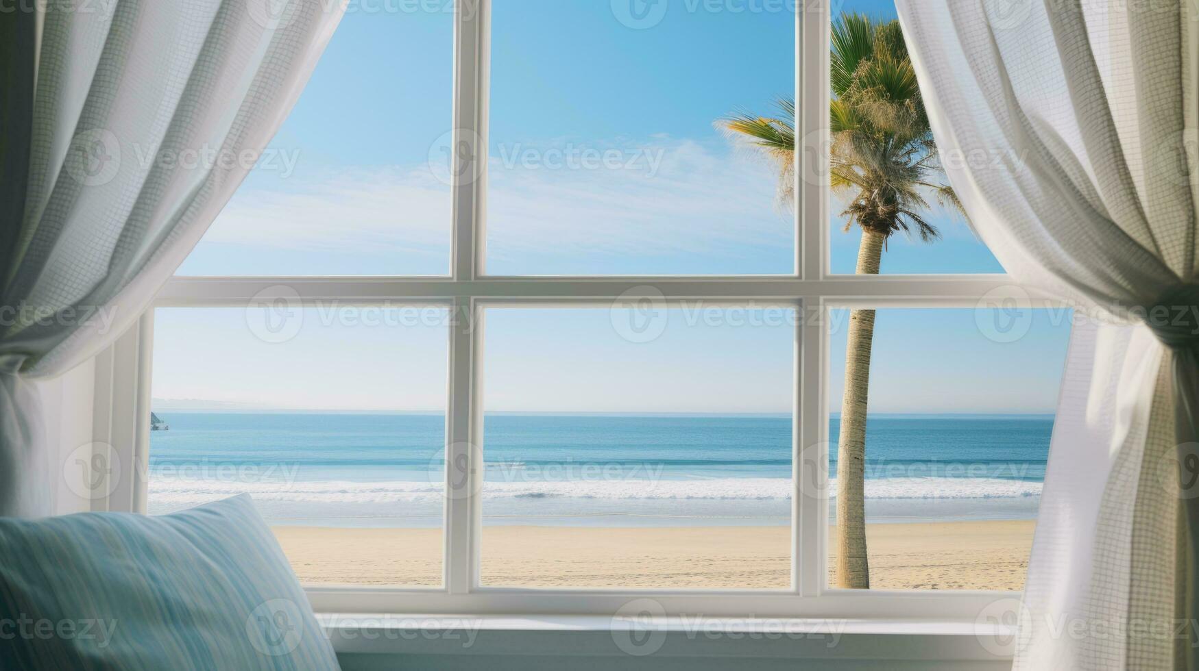 Tranquil ocean view with a majestic palm tree. Generative AI Pro Photo