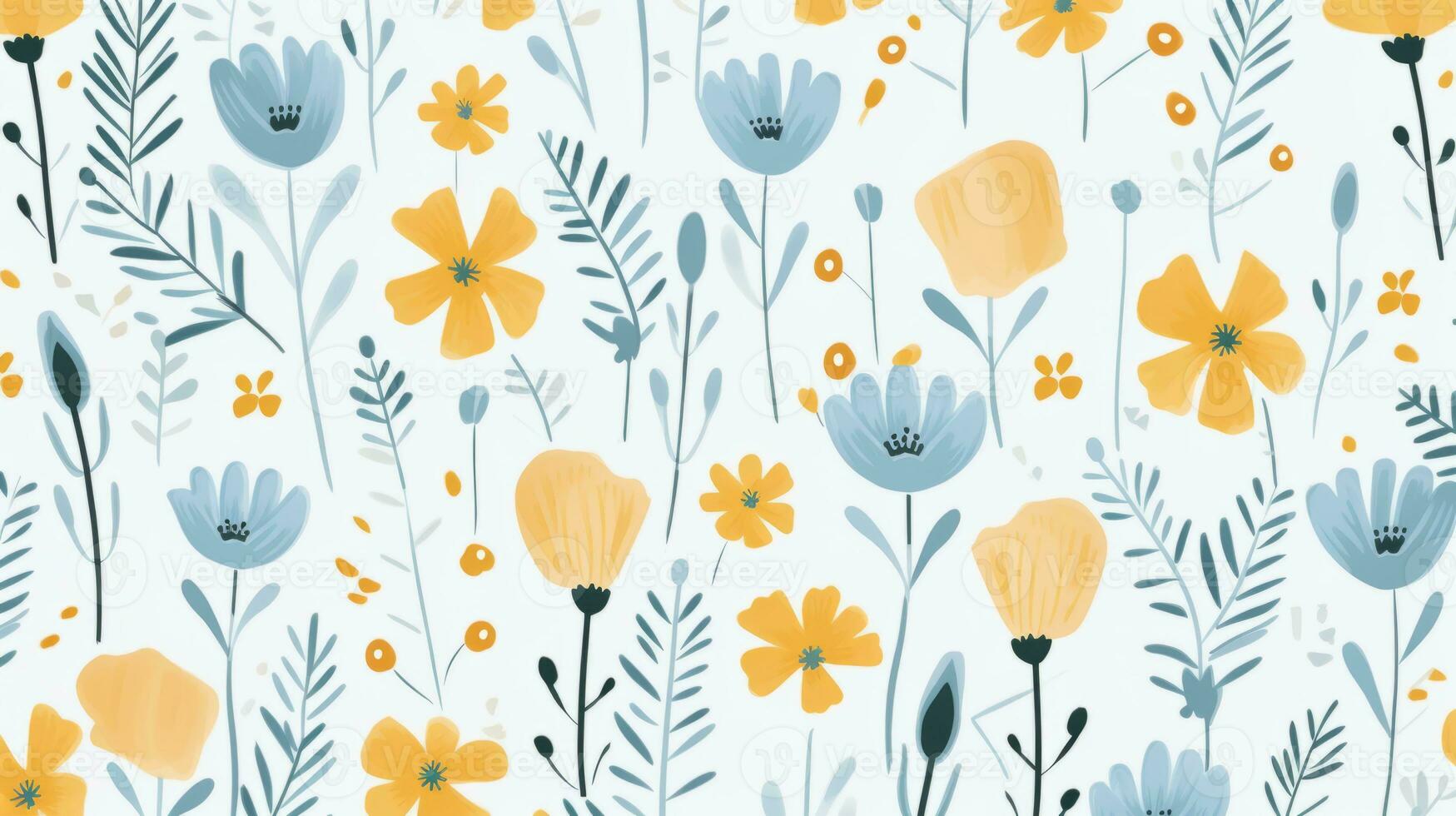 Delightful and whimsical flower pattern with a hand drawn feel. Generative AI Pro Photo